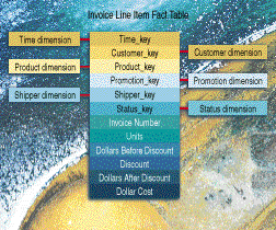 Step 2: Choosing the Grain. This second step seems like a technical detail at this early point, but it is actually the secret to making progress on the design. Choosing the grain means deciding exactly what a fact table record represents. Recall that the fact table is the large central table in the dimensional design that has a multipart key. Each of the components of the multipart key is a foreign key to an individual dimension table. In the customer invoices example in Figure 1, the grain of the fact table is the individual line item on the customer invoice. In other words, a line item on an invoice is a single fact table record, and vice versa.