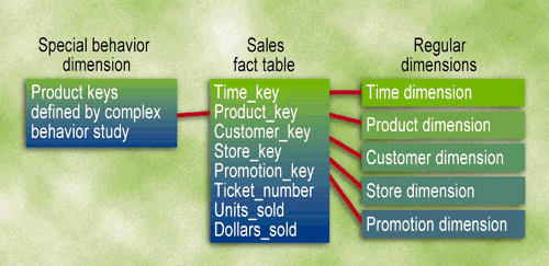 A second reality is that these tables must live in the same database space as the primary fact table because they are going to be joined to the fact table directly, thus affecting the DBA's responsibilities.