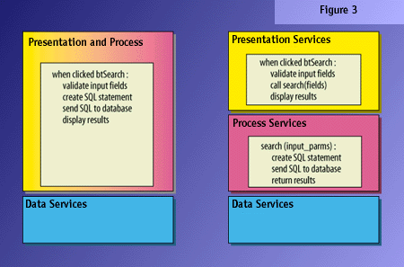 If all this sounds familiar, that's because it is-these architectures are no great leap from the design concepts of the last 20 years. What's new and exciting are the technologies that can exploit these architectures: Networks are much faster. A broad variety of user interface technology is available. Development tools have recently embraced the separation of presentation and process logic. And middleware for managing communication among the services and tiers is growing in sophistication and integrating into many development environments.