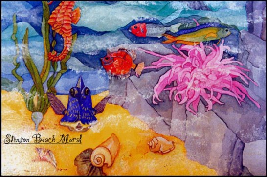Mural above fireplace in private Stinson Beach Home