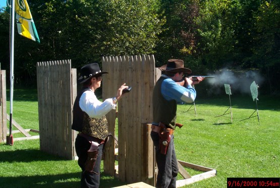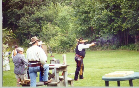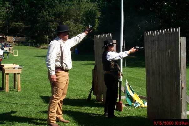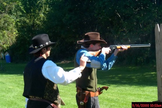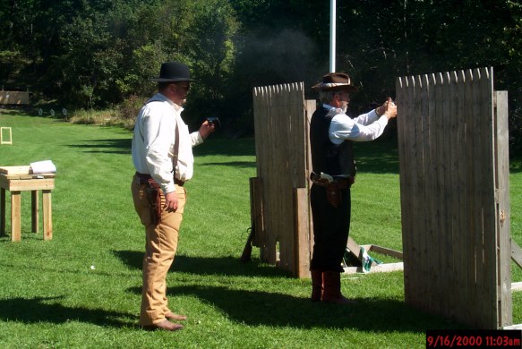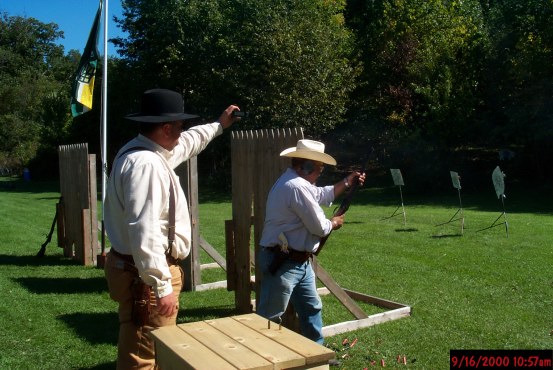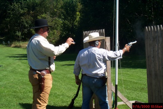 ![]() Posse members Francisco shooting with Trace doing Range Officer duty.