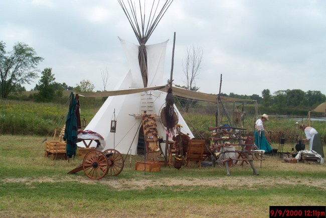 ![]() Bill's lodge and my tipi at the Marsh Haven Rendezvous, it wasn't a very big encampment