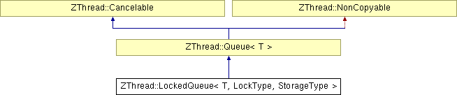Inheritance diagram for ZThread::LockedQueue< T, LockType, StorageType >: