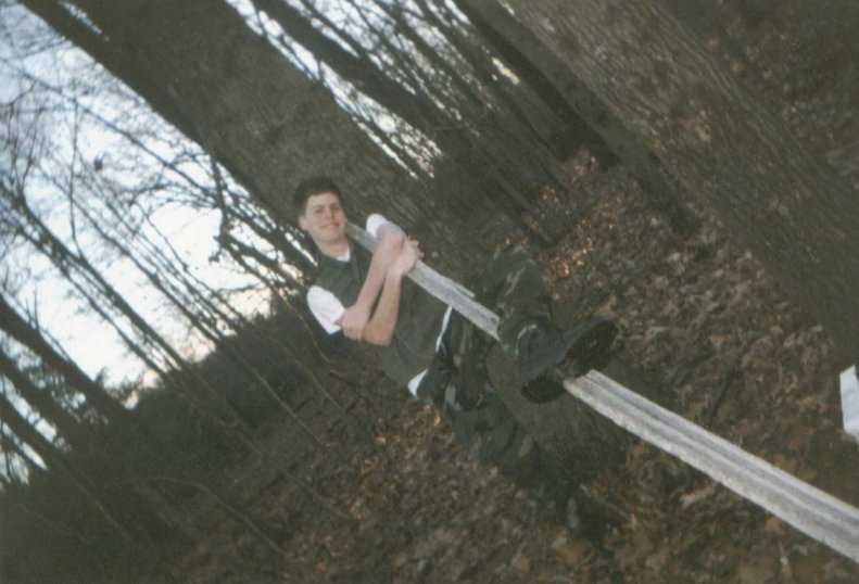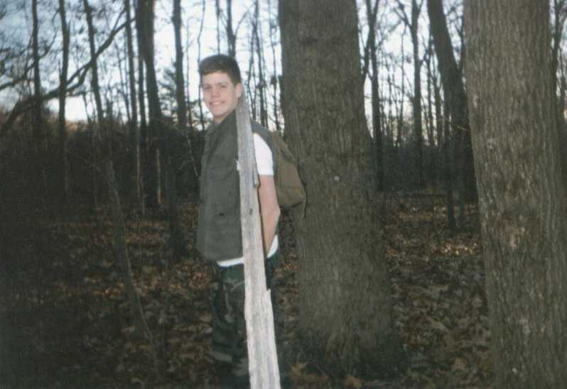 by a tree.