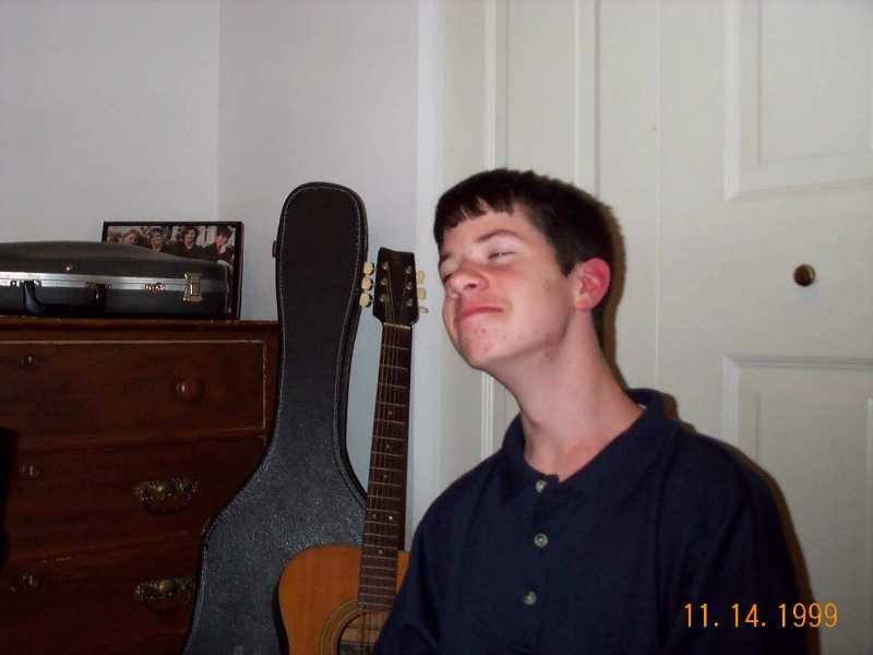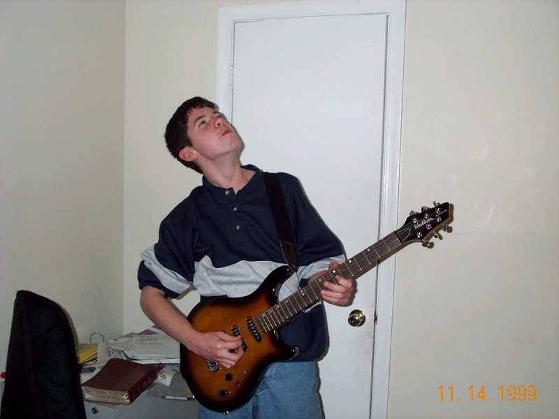 then when he gets his picture taken with a guitar.