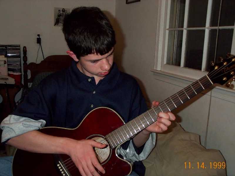 playing his guitar.