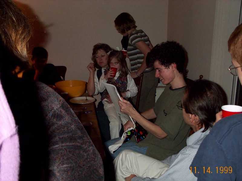 Elizabeth, and Ben watching David play Final Fantasy IV.