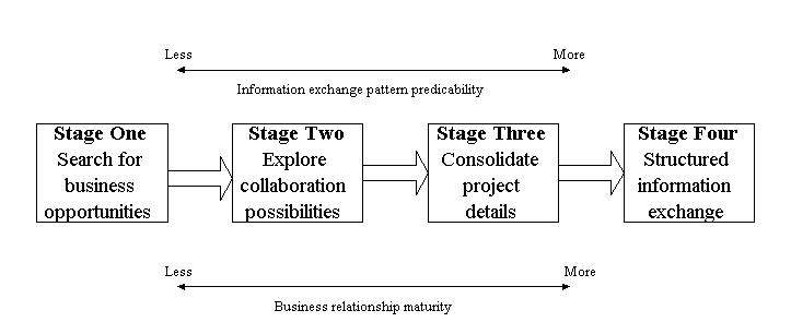 In our survey projects, we gathered that a significant number of our respondents were using the Internet to collaborate with their business partners. We, however, did not know how much the Internet was used in the different stages of business relationship development. In the Australian case study, we formulated a model to represent the four stages of the developmental process: namely, search for business opportunities; explore collaboration possibilities; consolidate project details; and structured information exchange (see Figure 2). Using this four-stage model, we can discuss how our participants are using the Internet to supplement typical business activities.