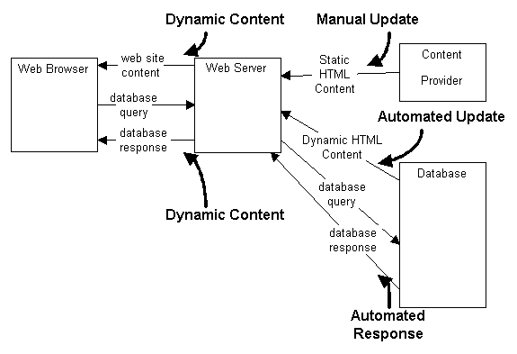 As depicted in figure 3, all of the content to the user is dynamically created. This is a much more useful environment for business in its quest for relevance on the Internet and allows businesses to make efficient use of their Web sites.