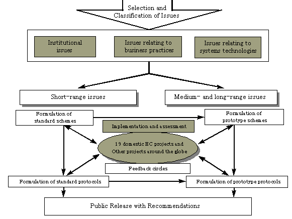 As a participant in the drive to establish common platforms for EC technologies and regulatory frameworks, the Electronic Commerce Promotion Council (ECOM) will assume a valuable role in coordinating the 19 projects currently planned, and serve as an open forum for the dissemination of project findings throughout the business community at large.