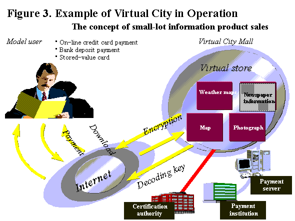 Such an awareness prompted MITI to obtain budget appropriations totaling 31.75 billion Yen last year for the promotion of electronic commerce projects. That should provide enough funding through fiscal 1997 for a number of slated pilot projects that will address and hopefully help surmount certain technical and institutional issues. These projects will serve as testbeds for various technologies that promise to provide the interoperability essential for common EC platforms. However, their importance actually extends beyond that. Namely, they can also be expected to cut the strategic investment risk faced by the private sector, thus "pump-priming"