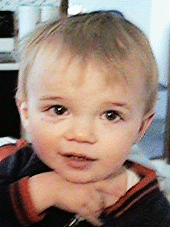 He has brown eyes and blond hair.