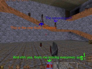 Now, I was in an enemy base and just lying back happily looking at a hostlie gun... What fun! Ok how to do it now. First, you'll need a hexed copy of QuakeWorld. Then, follow the instructions beneath: