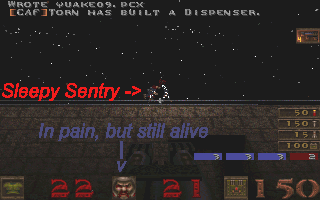 GOOD POINTS: Opponents cannot destroy your sentries and you can put them everywhere. When you do this cheat in Quake World the sentries will stay even if you leave, soon when the ammo runs out it will annoy th hell out ot your opponents because of the beeps it makes.