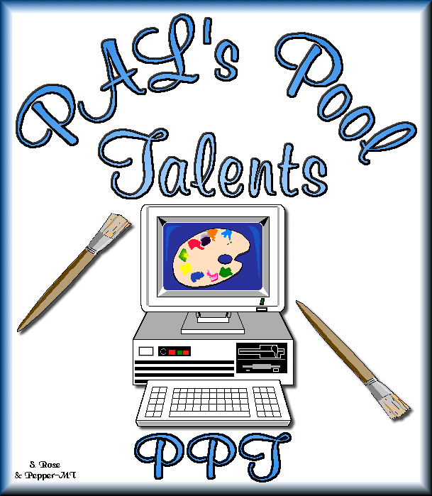 PPT graphics, started by Pepper and Shari Rose, are produced as a group effort by combining different talents of "PAL" (Print Artist Lover) volunteers, who have come together in recent years, by sharing a common interest in the computer software program called PRINT ARTIST. PPT (Pals Pool Talents**) volunteers are in no way affiliated with Sierra or PAUC.