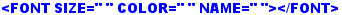 Basic Font Tag. With this code you may specify the fonts you wish to use, the color, and the size of the font. Try to specify the windows fonts that everyone has on their systems, if you specify a font not on someone else's system the font will not show. You may specify more than one font separated by commas. If the user does not have the first font they may have the second or third. First, check your page using each of these fonts individually to make sure you like the result. EX: NAME="Verdana,Ariel,Albertus Medium"