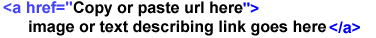 Basic Link Tag. This code is used to link to other pages within your site, other websites, or Internal Links. The name of your page to link to EX: mypage2.html is placed between the " ". When linking to someone else's website you must use the URL (website address. Click here to learn more about linking URLS and here to learn how to leave a calling card in a guestbook. All use this html code.