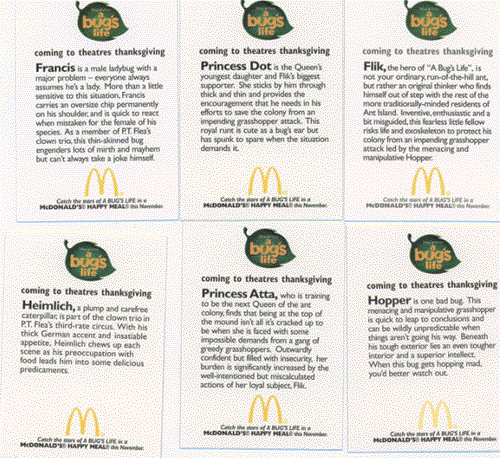 Scans of the collector card that Pixar will be putting out with McDonalds restaurants in the Fall (in USA) (back) From Bill Malloy |