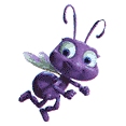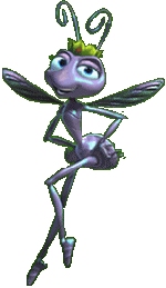 Flik, and flies away. The flying circus bugs take off after him, and we have this
