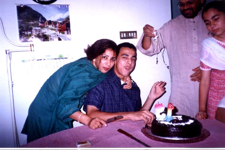 Mom and her Son ... (Aslam uncle, playing with the spray, & Shenaz, thinking of eating the Cake!)