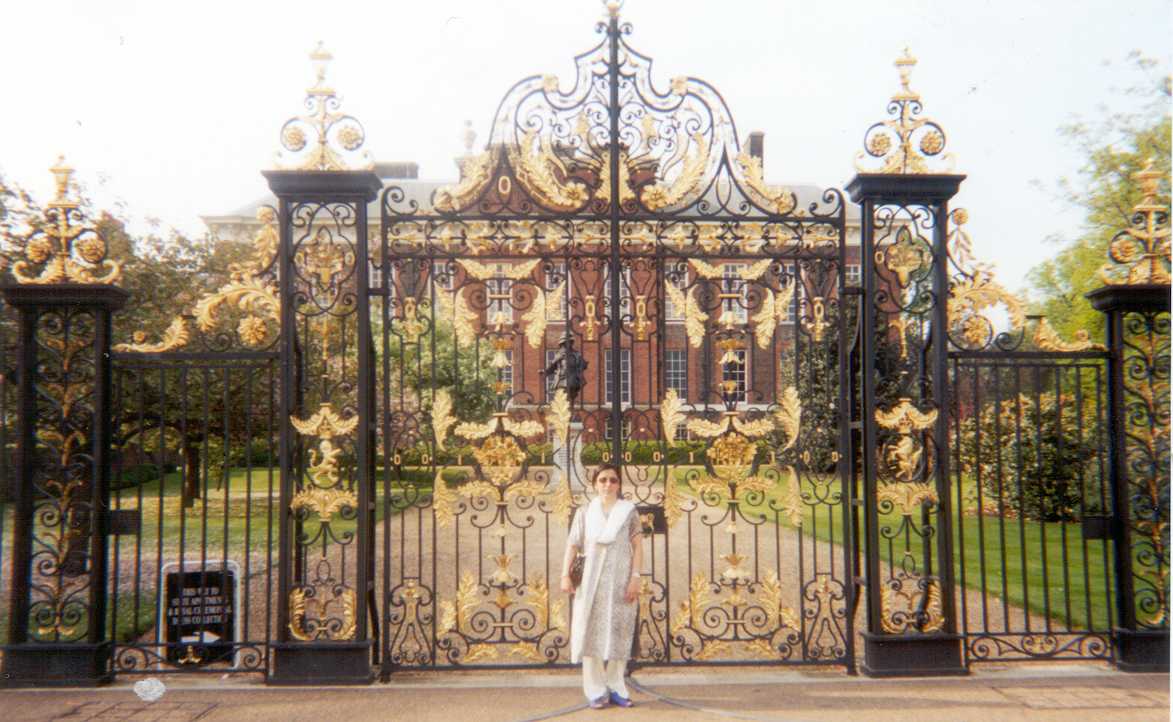 My mom in front of Kensington Place. Thank god, there was no tour at that time!