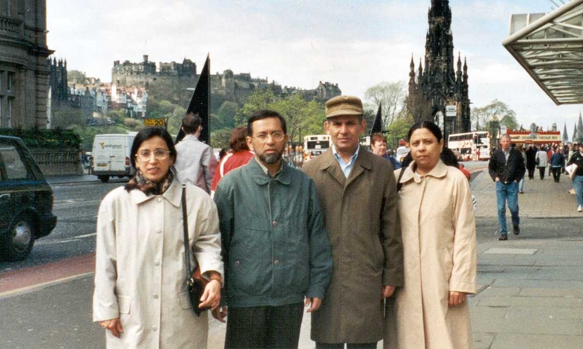 Edinburgh Castle in the background (The Times Square of Edinburgh). Mom, Dad, Ghulam Uncle, & Fatima Aunty.