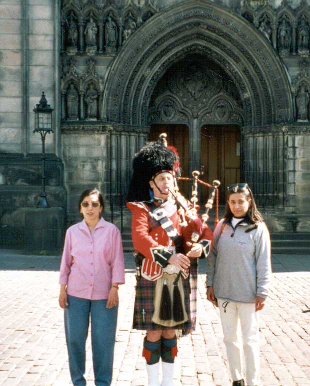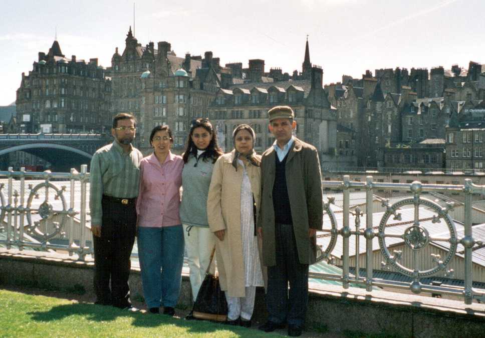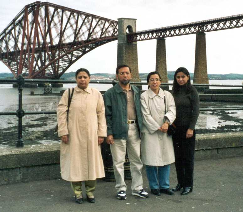 Forth Rail Bridge in the background. Fatima Aunty, Dad, Mom & Farhana.