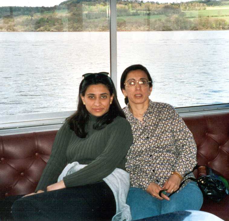 Inside a boat (could be Britannia but then again, Britannia doesn't move, and this boat is moving). Farhana & Mom.