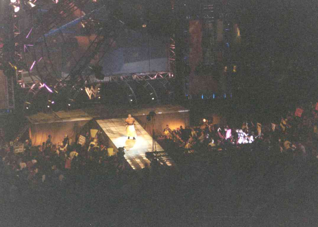 Out comes Rikishi, over 350 pounds Monster, who nearly killed Austin with a Car, last year.