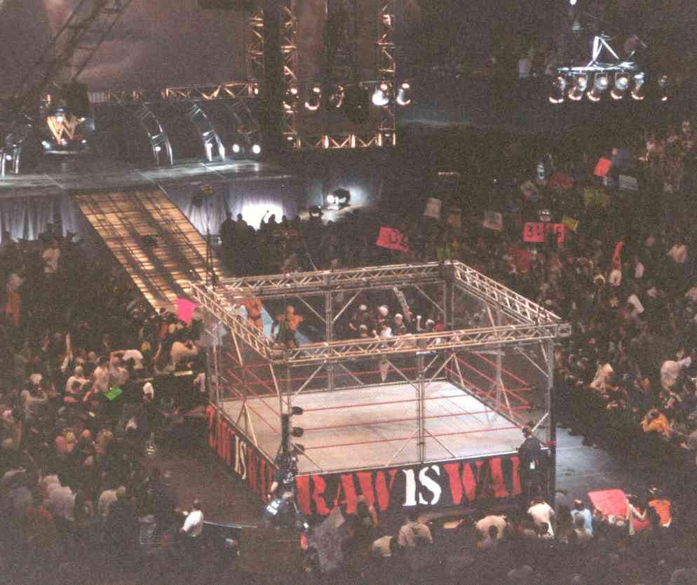 At exactly, 10:00pm, was the match everyone was waiting for. The CAGE match between Rikishi and Stone Cold Steve Austin. The only match more dangerous than this one, is the Hell in the Cell match.