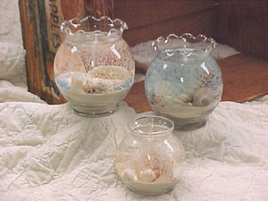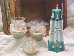 and seashells on the bottom, and bubbled 'water' supporting the wick.