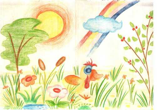 Tyttäreni piirtämä onnittelukortti, ikä 12 v.
