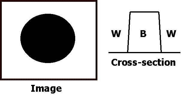 square waveform, with white values on either side of the circle, and black