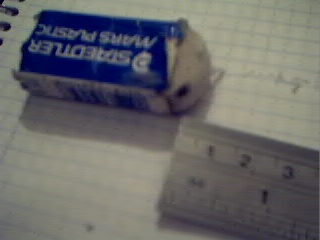 the competition is to make the longest chain from the eraser's garbage. My record is a 6cm chain. If you've broke my record and got a digital camera & you can take a picture of your chain, please send it to me & I'll post it here. the rules are that the chain must be built from the eraser's garbage, the chain must be in one piece & it mustn't be attached by hand only by trailing. In the picture you can see an example to a chain which is 3 cm long.