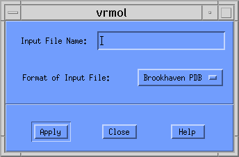 Please note that this window stays after [Apply] is pressed so that you can generate multiple VRML structures each time the program is run. To close this window and exit VRMol, simply click the [Close] button.