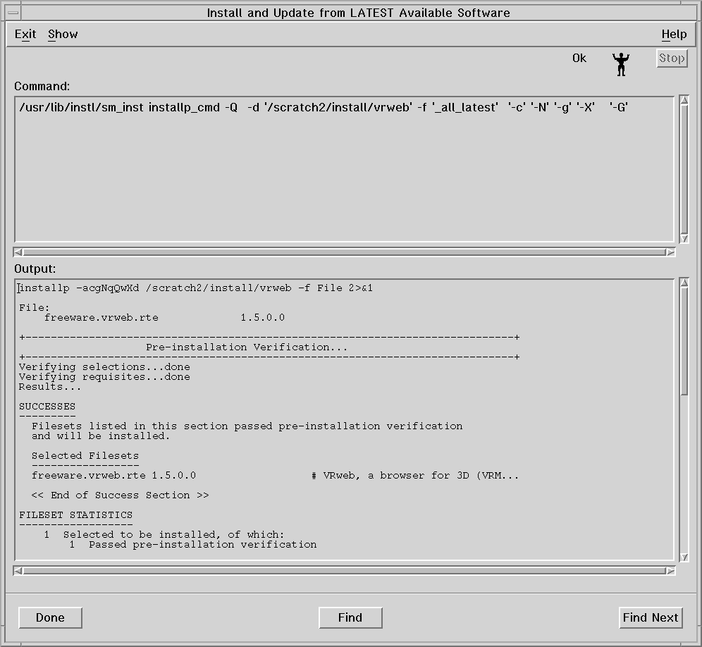 At this point, smit installs the program into /usr/local/bin and, when completed, you will see the smit information window similar to the one shown below.