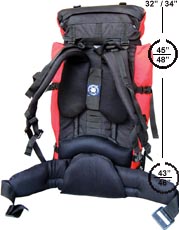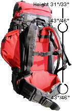 The back harness shoulder straps are adjustable to 4-6 inches to fit to any size of wearer's back length, or to put it in simple words the self adjustment back system is one of the most comfortable and technically advanced harnesses currently available, supported by a heavy duty in-built U frame which is shaped to the users normal spine curvature, two big size side pockets, double compartment, Hydration sleeve with universal reservoir clip, Rucksack Rain Cover is provided in the bottom pocket of the sack, big pocket on hood, chest harness, crampon patch, Ice axe and Ice hammer loops, hand resting loop and multiple attachment points.