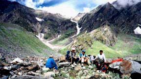 Beas Kund trek is one of the most popular and beautiful trek in Kullu Valley. Beas Kund is a holy lake where Rishi Vyas took his daily bath. River Beas originates from here. Solang Nalla base camp is 13 km from Manali and 1 hour drive, a popular place for tourists for ski slopes, para gliding etc. Dhundhi camp gives first glimpse of Mt. Hanuman Tibba and Seven Sisters. Beas Kund area might be full of snow at the time of this trek. This is enjoyable and easy going trek for any age group. ![]() |