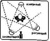 Вообще же, освещение — это очень и очень тонкая работа. Вот пример: как-то раз пришлось мне помучиться, снимая человека, который сидел за столом, опустив голову. Как я ни бился, световая картина сцены была такова, что нижняя часть лица человека была сильно затенена, «проваливалась». Наконец выход был найден — на стол перед человеком положили лист белой бумаги, дали на него луч сверху, свет отразился от листа и «нарисовал» персонажу вполне приличный подбородок. — Всего лишь один небольшой листок бумаги сыграл роль матового отражателя.