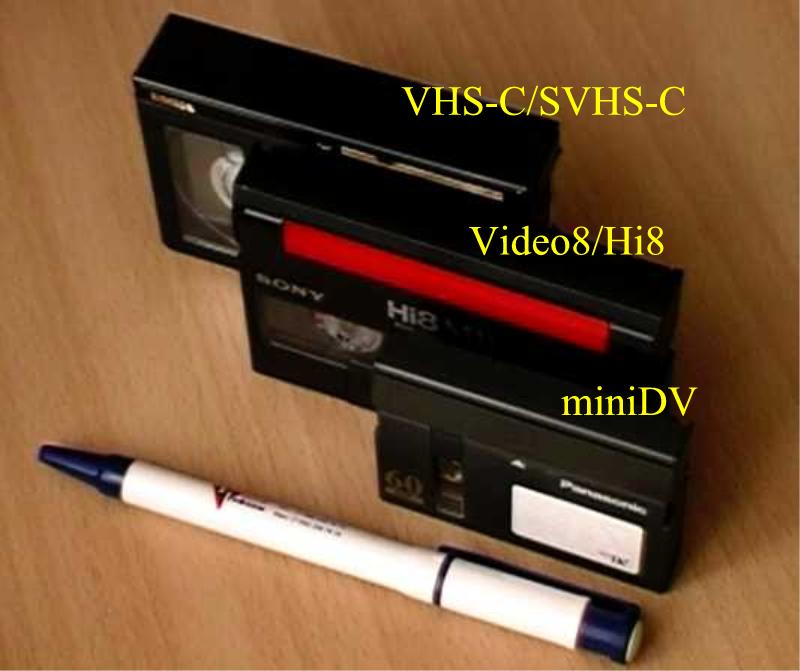 | Формат | VHS-C | Video8 | SVHS-C | Hi8 | Digital8 | miniDV |