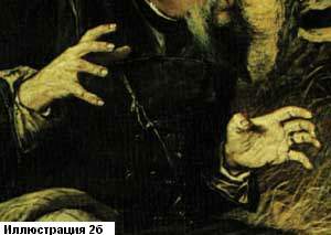 полотне "Охотники на привале", изобразив их руки, (иллюстрация 2 а, б, в,