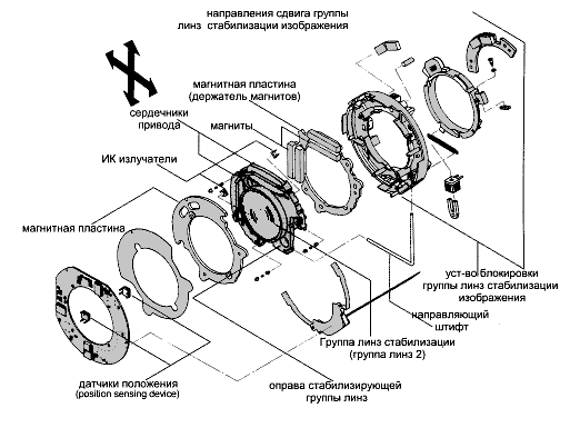 направлениях, группа линз блока стабилизации может сдвигается и в