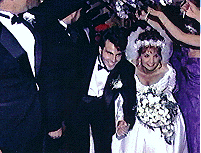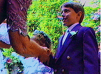 Для того чтобы сделать этот фрагмент я позволил новобрачный подойти к арке из рук и заснял то, как они входят в этот коридор. Потом поставил камеру на паузу, обежал гостей и заснял финальную сцену, кадр из которой Вы видите. Важно помнить, что зрители хотят видеть как начало сцены, так и ее завершение. Обратите внимание, что сцена снята с низкого угла. |