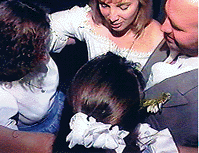Качество данного кадра довольно высоко, потому что это крупный план. Проблема начинающих операторов в том что они не осознают силу и значение очень крупных планов. Заметьте, что верх головы и подбородок не поместились в кадре. Это не беспокоит зрителя, так как его воображение дорисовывает недостающее. Самые главные элементы - это глаза и рот. Отметьте себе чтобы сделать несколько очень крупных планов при следующей съемке. |