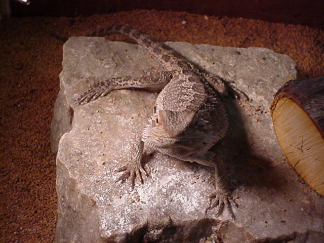 Hobbe sitter på sin solsten och tittar upp på fotogtafen.