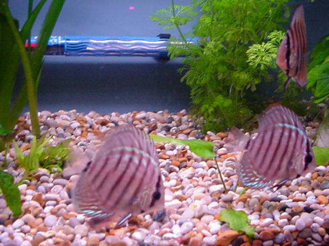 Här är ett av min brors akvarier. Det här är 3 Diskusar. Dom är otroligt vackra att se på.