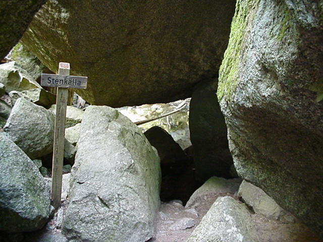 Den här stengrottan finns i Tiveden. Man får gå igenom den när man går en runda där.