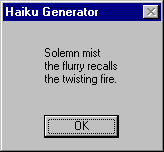 Back to the top Haiku Worm February 10, 2000 Since the dawn of e-mail worms, it seems like a new one crops up almost daily. Mostly non-malicious, these worms are far more a headache for network administers who must deal with the bandwidth they eat up than a real problem for users. Now there's even a worm with some entertainment value. W95/Haiku.Worm, a.k.a. I-Worm.Haiku, Win32/Haiku.worm, and W95.Haiku.16384.Worm, is a not so typical e-mail worm with a twist: it creates haikus, plays a sound file, and delivers an interesting lecture on how to create a haiku. Another twist that is worrisome is that this virus is Internet-aware: it contains all the code needed to send e-mail messages without an e-mail program, as well as to download files from the Web.