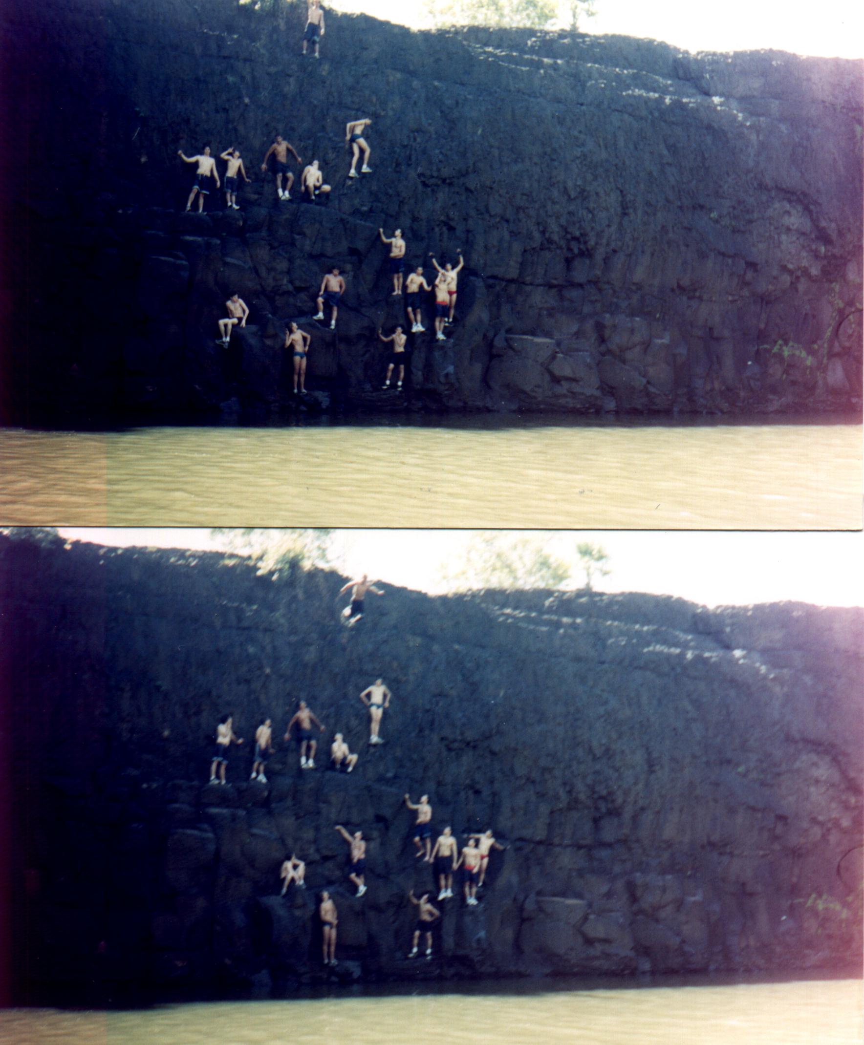 Foto tirada com a maioria da galera no paredão da cachoeira.