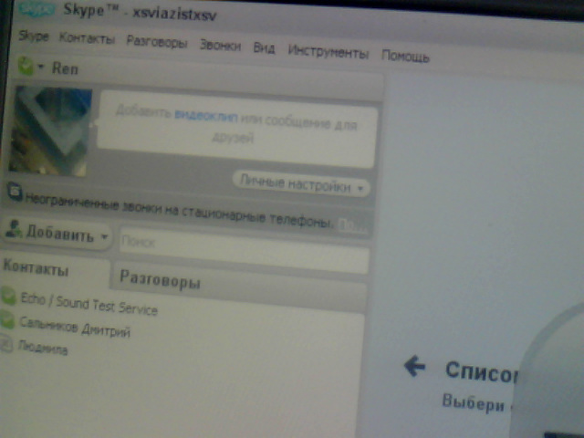 Затем выбираете друга, нажимаете вверху слева (изображение веб камеры, второе слева, голубое) и ждёте подтверждение от друга, появляются справа два экрана в нижнем вы видите себя, в верхнем друга. И начинаете общение если нет звука ОТКРОЙТЕ МИКШЕР И ВКЛЮЧИТЕ МИКРОФОН смотрите описание